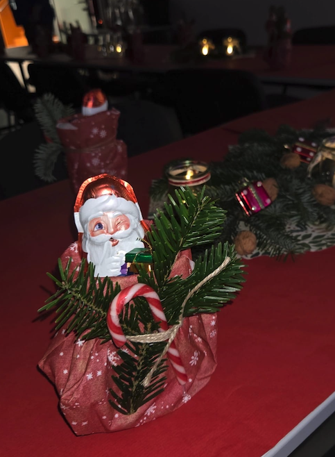 Ein herzlicher Dank gilt an dieser Stelle allen, die zum Mitbringbuffet und zum Gelingen der Feier beigetragen haben. Ein besonderer Dank gilt unserer Claudia, die sich mit Hingabe um die Dekoration sowie um die kleinen Weihnachtsgeschenke für alle Teilnehmenden gekümmert hat. Außerdem danken wir Salvatore für seiner mit viel Witz gespickten Improtheater-Vorführung.